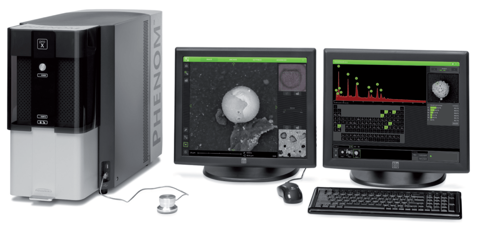 Phenom proX Scanning Electron Microscope, equipped with high-sensitivity backscattered electron detector (compositional & topographical modes)EDX Analysis:Detector type: Silicon Drift Detector (SDD) Thermoelectrically cooled (LN2 free)Detector active Area: 25 mm2X-ray window: Ultra-thin Silicon Nitride (Si3N4) window allowing detection of elements C to AmEnergy resolution Mn Kα ≤ 140 eV Max. Input count rate: 300,000 cps
