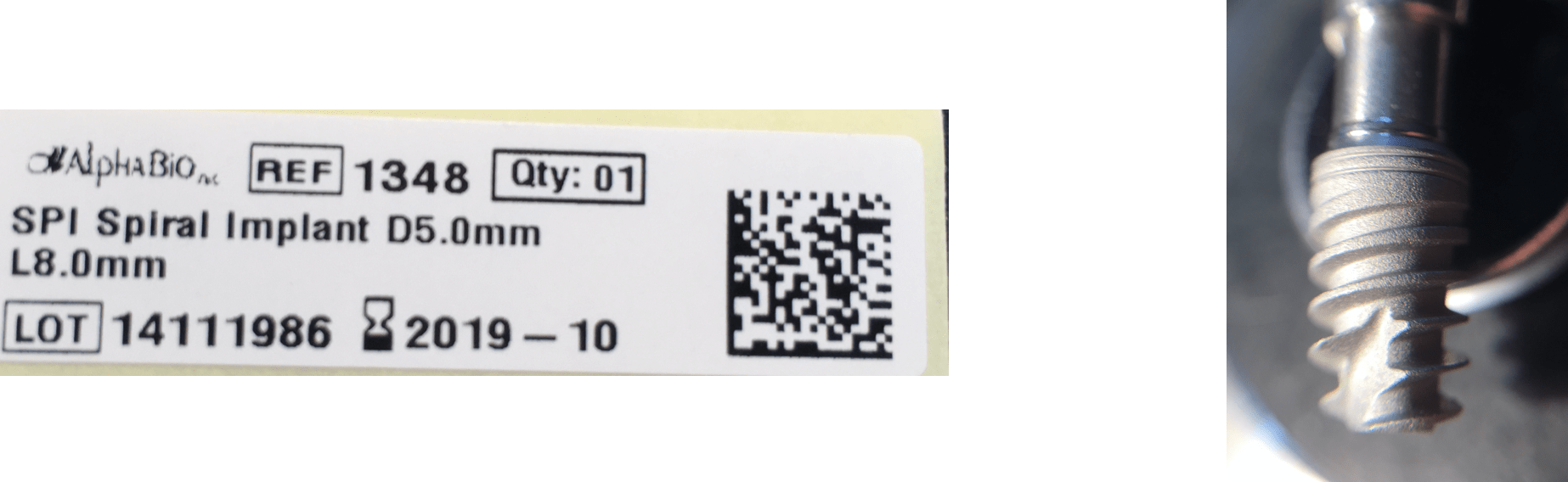 SPI Spiral Implant LOT 14111986 Exp.Date:2019-10