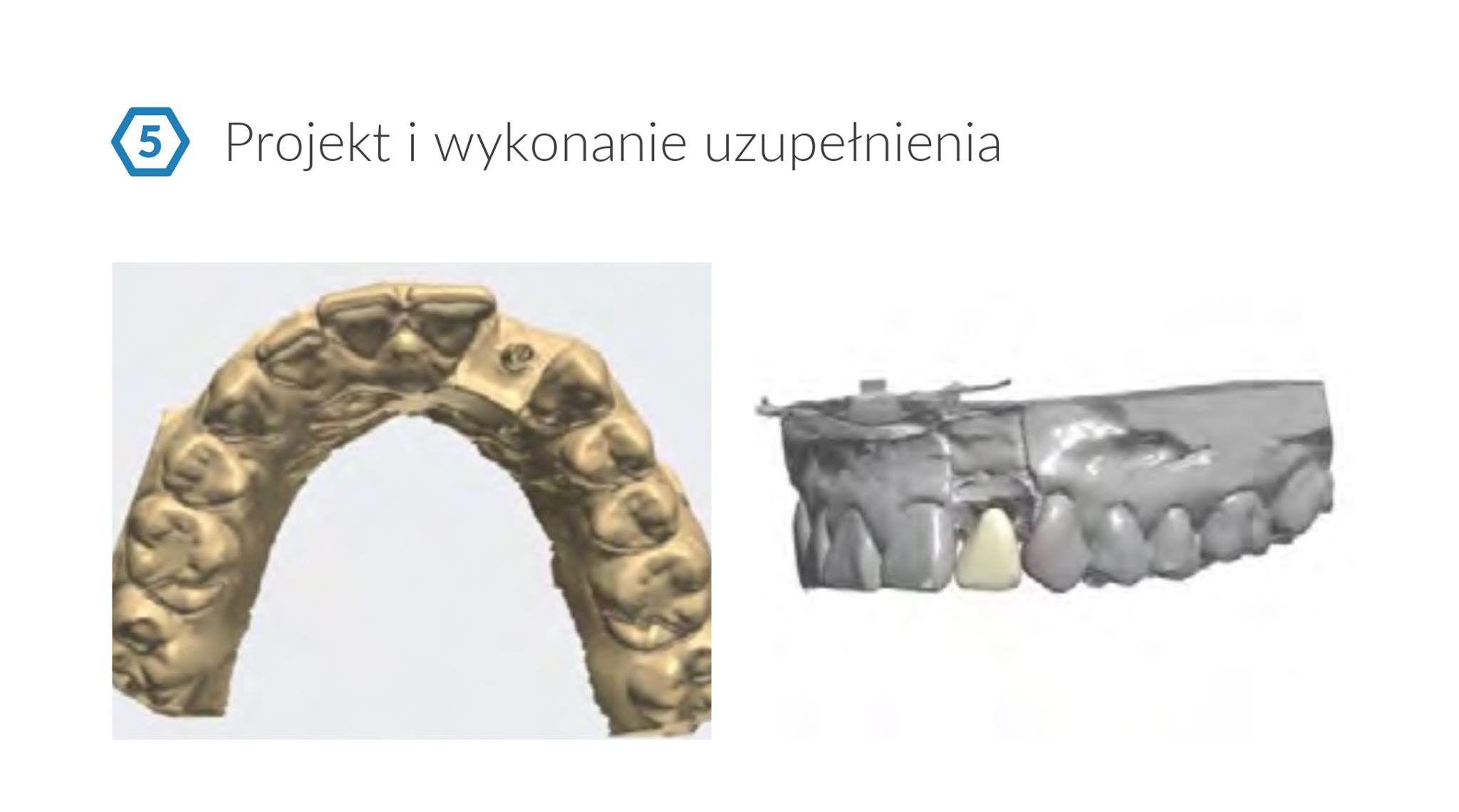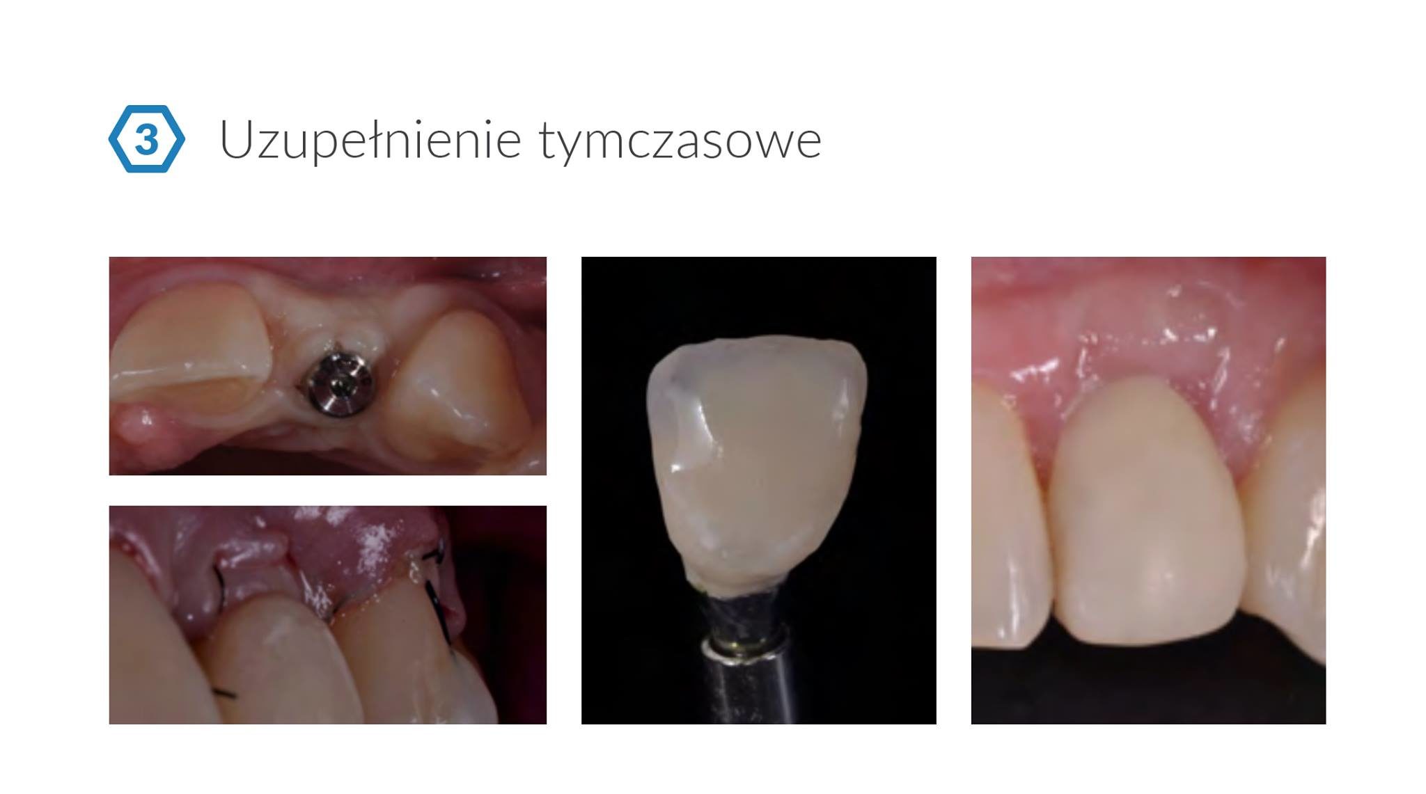 Po okresie gojenia tkanek twardych i miękkich (standardowa śruba gojąca) wykonano uzupełnienie tymczasowe oraz przeczep tkanek miękkich (CTG) dla poprawy ich biotypu.