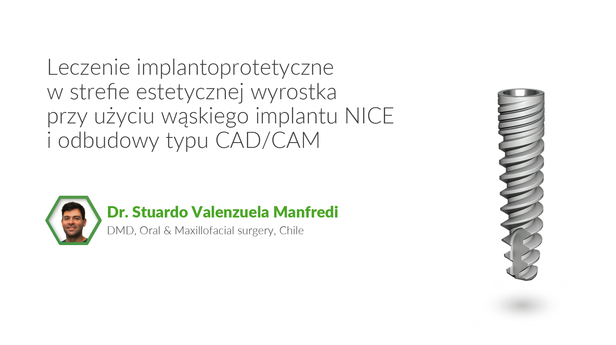 Zabiegi w strefie estetycznej są jednym z największych wyzwań w przypadku uzupełnienia braków przy zastosowaniu implantów. Przypadek kliniczny przedstawia uzupełnienie pojedynczego zęba u młodej pacjentki z wysokimi oczekiwaniami estetycznymi. Do implantacji w miejscu wąskiego wyrostka zębodołowego zastosowano wąski implant NICE i odbudowę na filarze Ti Base CAD/CAM.