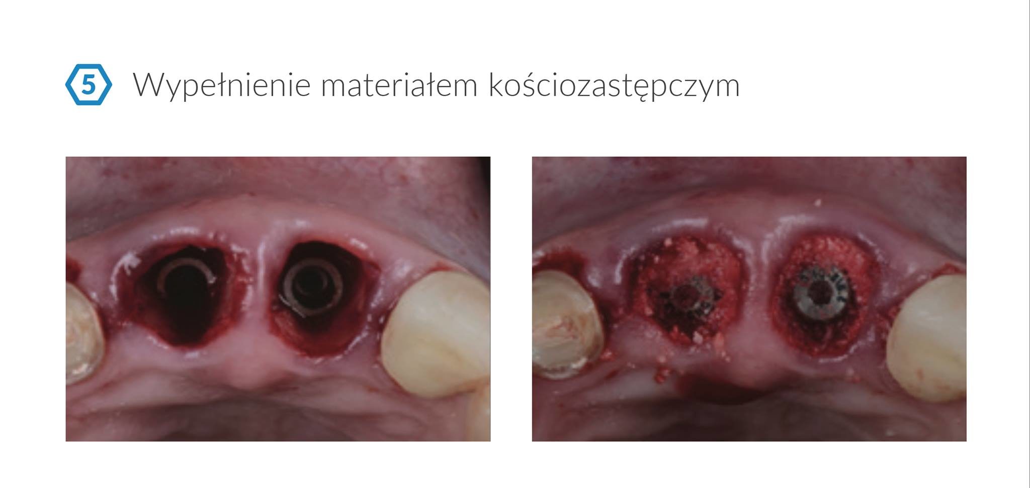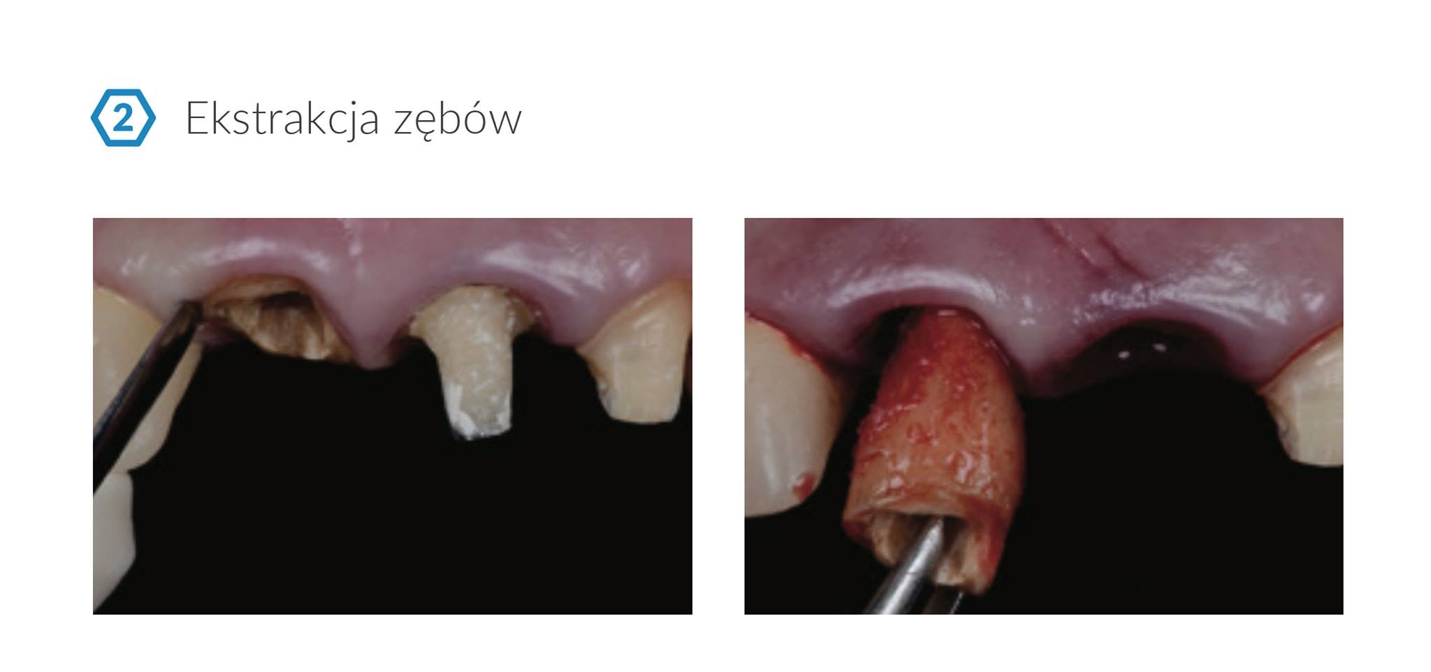 Kluczem do sukcesu w przypadku zastosowania implantacji natychmiastowej jest zachowanie jak największej objętości kości wyrostka zębodołowego. W związku z tym ekstrakcja zębów była przeprowadzona w sposób jak najmniej traumatyczny dla tkanek. Złamany korzeń zęba 11 został usunięty bez nadmiernego powiększenia zębodołu i bez uszkodzenia blaszki przedsionkowej.