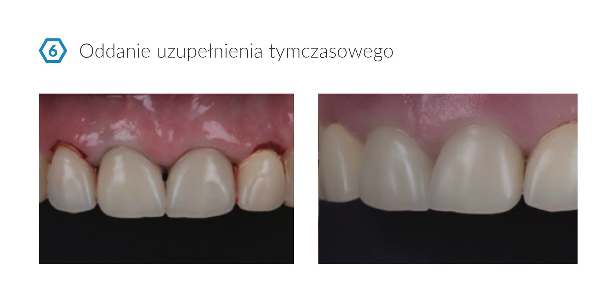 W dniu zabiegu wykonano i zamontowano uzupełnienie tymczasowe jako natychmiastowe obciążenie. Pierwszą wizytę kontrolną wyznaczono 7 dni po zabiegu.
