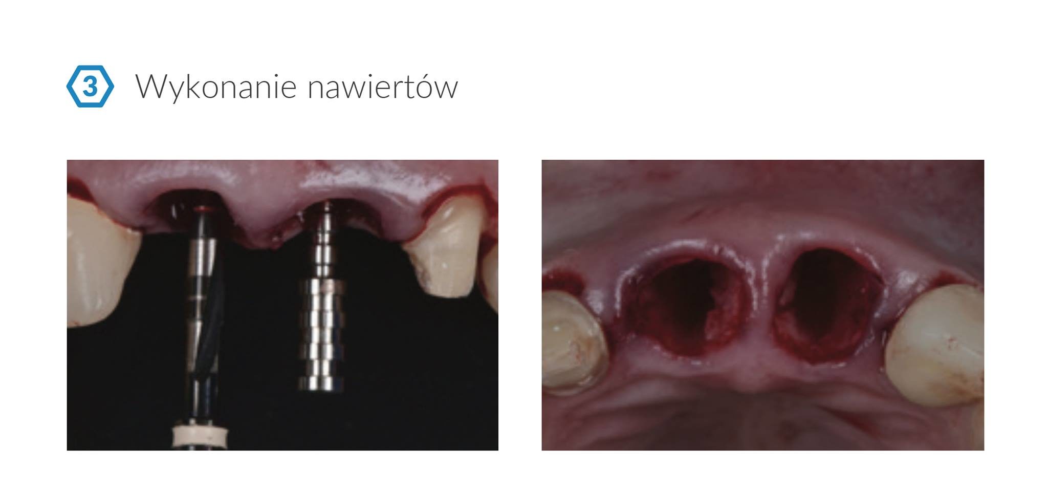 Nawierty wykonano zgodne ze standardową sekwencją dla tej średnicy implantów NeO. Zastosowane wiertła stopniowane są idealnie dopasowane do kształtu implantu NeO.