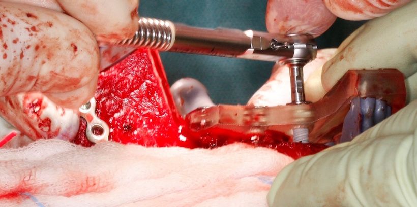 Fig. 16. Założenie 3 implantów do pobranego fragmentu talerza kości biodrowej