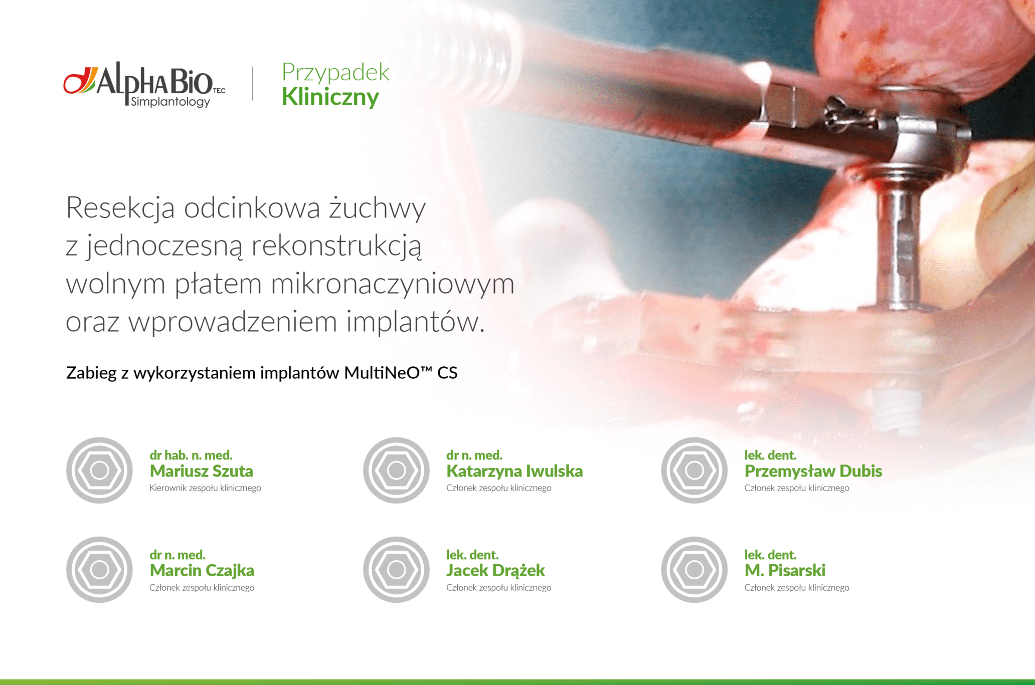 Zabieg chirurgiczny przeprowadzono w składzie: Dr hab. n. med. Mariusz Szuta, Dr n.med. Katarzyna Iwulska, lek. dent. Przemysław Dubis, Dr n.med. Marcin Czajka, lek. dent. Jacek Drążek, lek. dent. M.Pisarski.